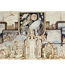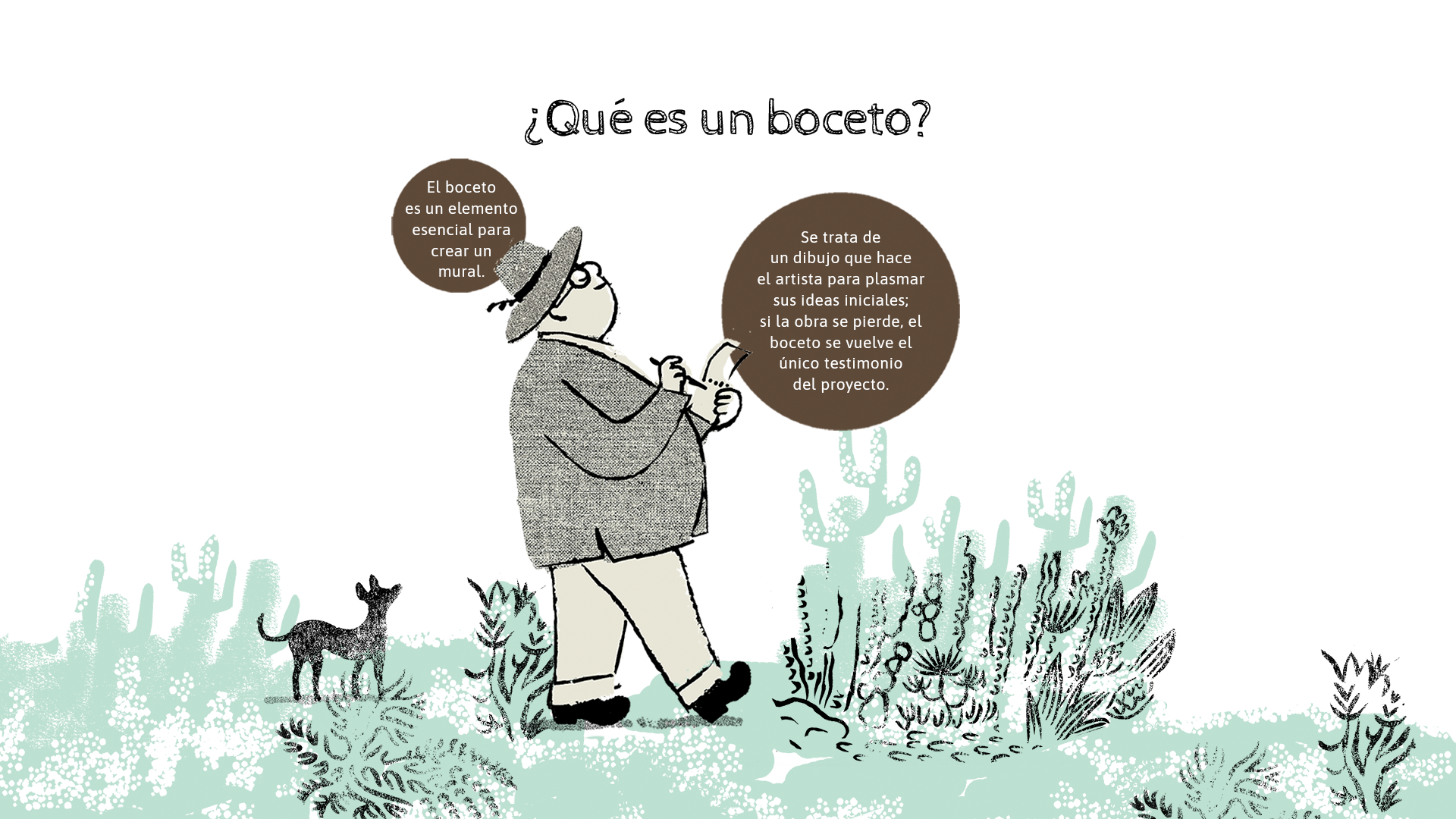 Para “El hombre en la encrucijada”, Diego realizó más de 30 bocetos en sobres, cartones, papel, tela. El boceto principal del Museo está hecho en tela.
